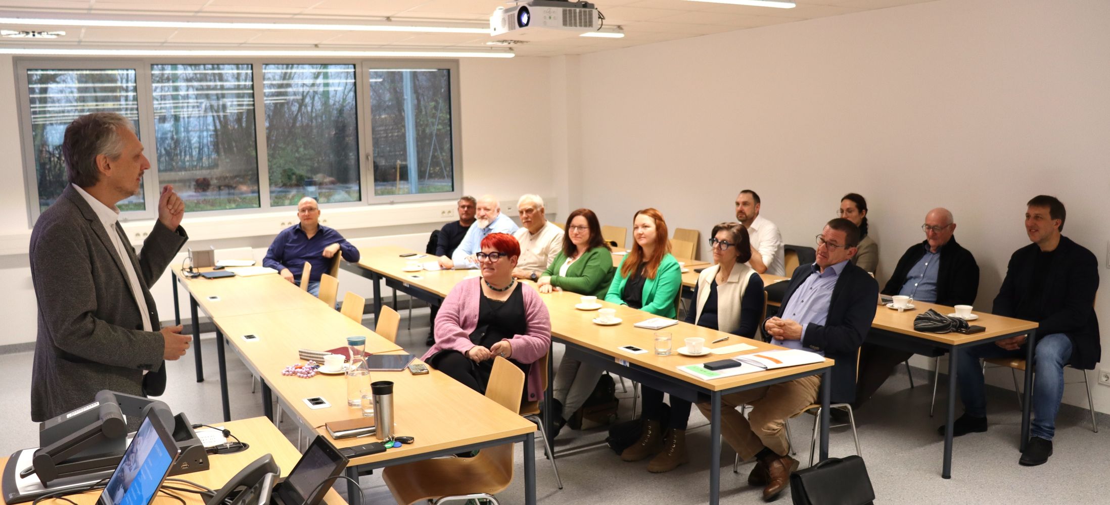 Der örtliche Bürgermeister Wolfgang Beißmann gab bei dem Treffen zu bedenken, dass der ÖPNV-Ausbau ohne Förderung schwierig sei. Hochschulkoordinator Georg Riedl bekräftigte „Pfarrkirchens tragende Rolle als Bildungszentrum“. Studiendekanin Prof. Dr. Sabine Dittrich stellte der ILE-Delegation die vier Kompetenzfelder am European Campus vor: Gesundheit, Tourismus sowie das Ingenieurwesen für Energie und nachhaltige Gebäude. Nach dem Besuch der Labore in Pfarrkirchen führte Prof. Dr. Markus Hainthaler bei einer Exkursion zum Standort Arnstorf durch die dortige Forschungsstätte des Studiengangs „Building Products and Processes“.